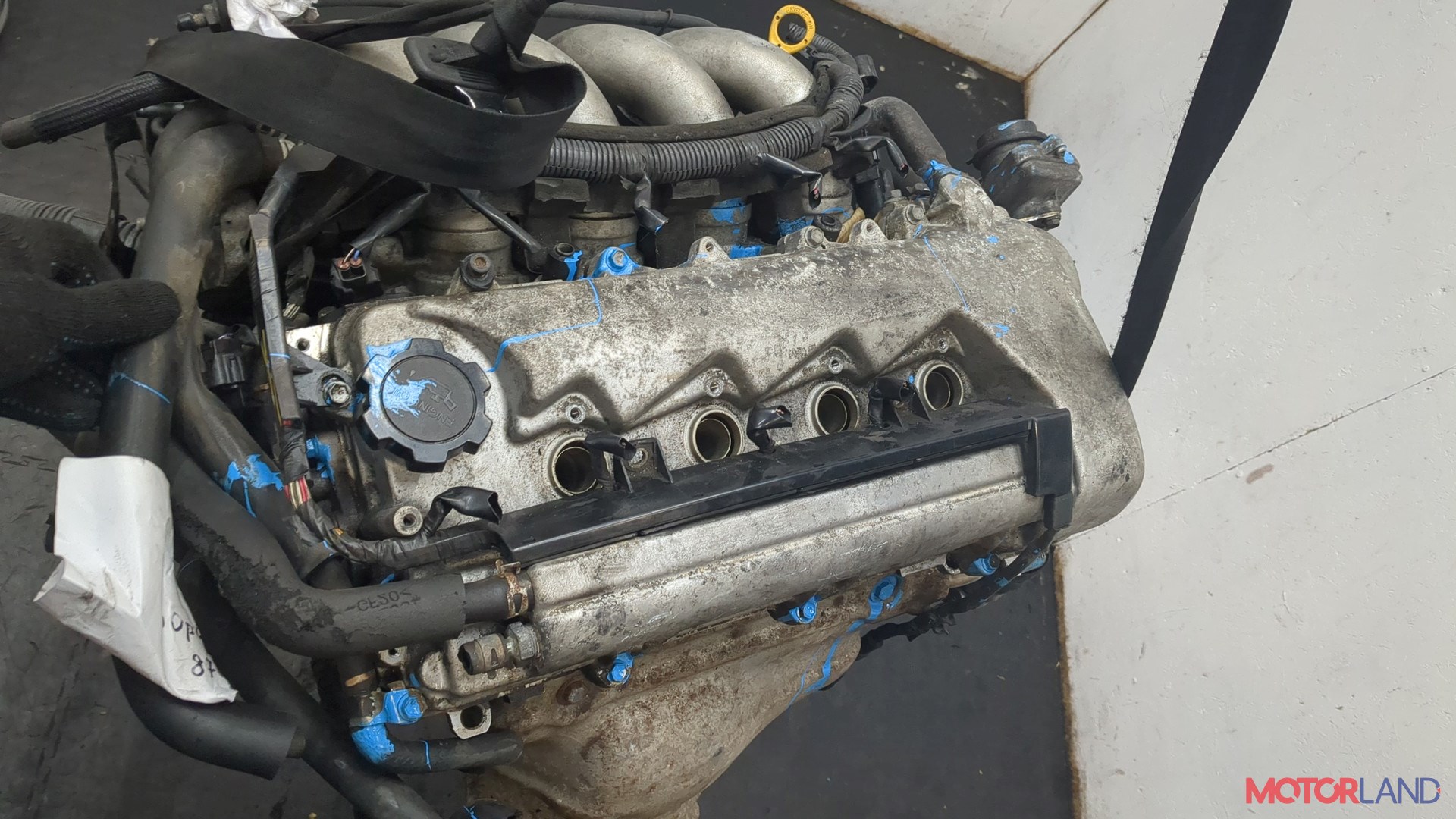 Описание:прокручивается, состояние ГРМ - нормально; поддон - мят; клапанная крышка - бита; эмульсия - нет, 1 массовый; Фото не актуально, с запчасти отделены: Заслонка дроссельная, Форсунка топливная, Генератор, Компрессор кондиционера, Маховик;